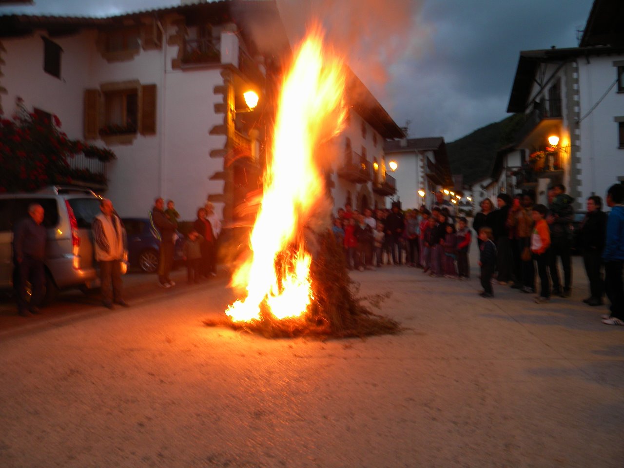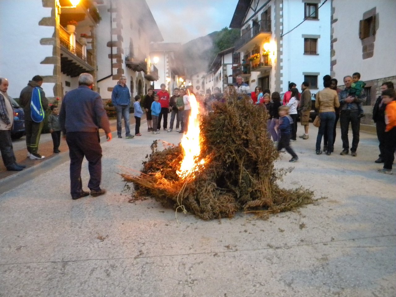 encienden hogueras o fuegos, para festejar la llegada del solsticio de verano, tenía también una función purificadora, de hecho cuando se salta la hoguera se dice: “sanaufera, gaistoak kampora eta ona barnera”,(lo malo fuera y lo bueno para adentro).